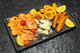 calamare crocante,cascaval pane,sos de usturoi